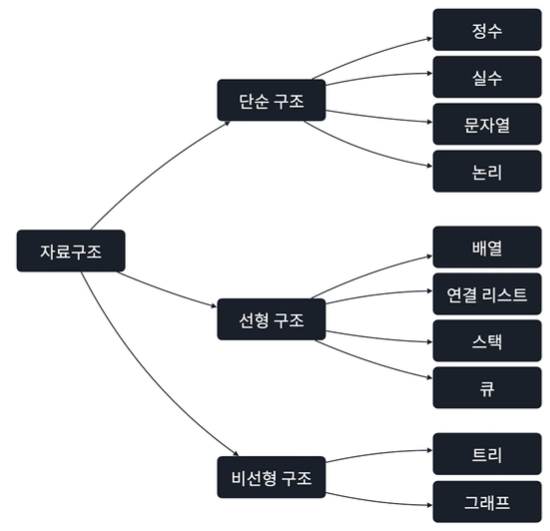 - 배열, 연결리스트, 스택, 큐