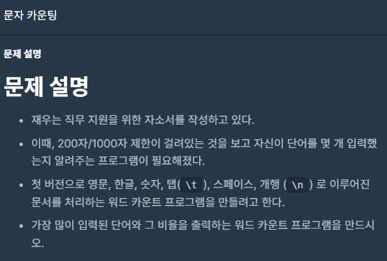 코딩테스트 - 문자 카운팅