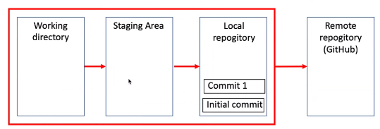 2. staging area - commit하기 위해 대기하고 있는 영역, add한 파일이 staging area에 올라가게 된다.