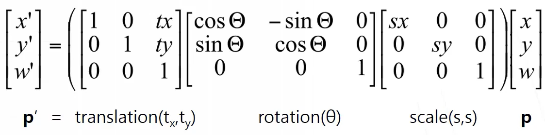위의 예제에서는 scale, rotation, translation 순서로 적용된다.