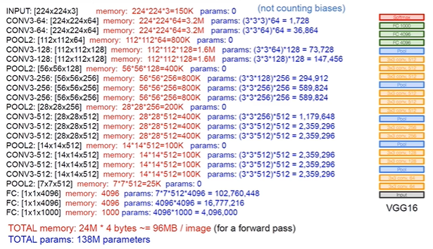 VGG : 메모리, OP가 많음 (왜?)