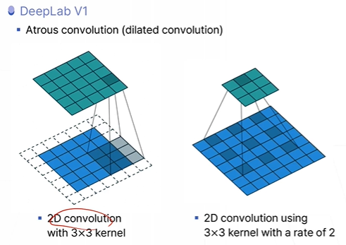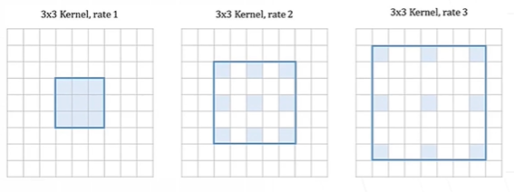 rate : 2 -> 두 칸씩 띄워서 좀 더 넓은 범위에서 conv할 수 있도록