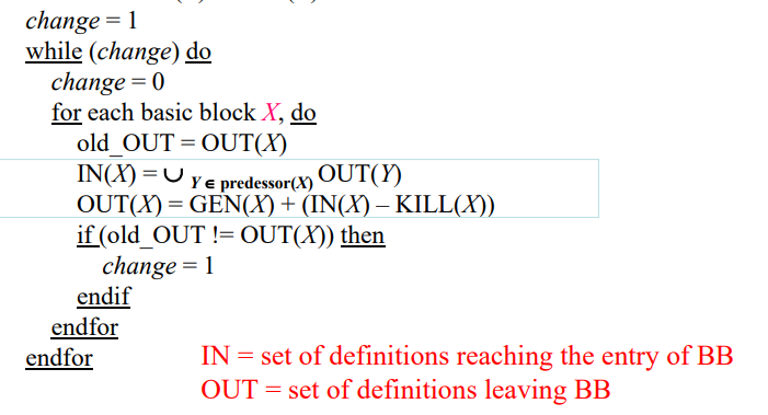 OUT = GEN(X) + (IN(X) - KILL(X))