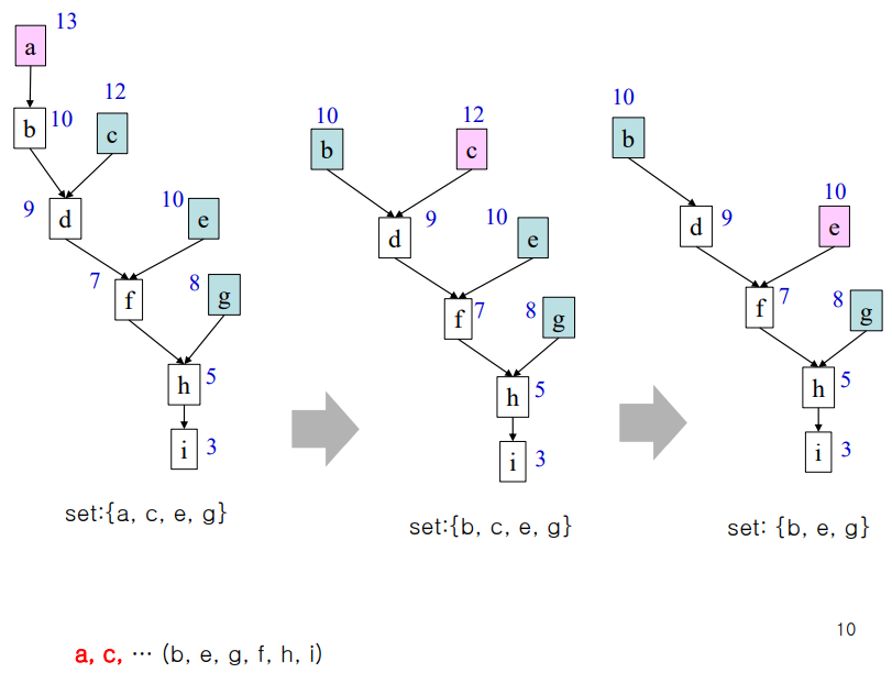 set에서 오래걸리는 녀석부터 선택한다.