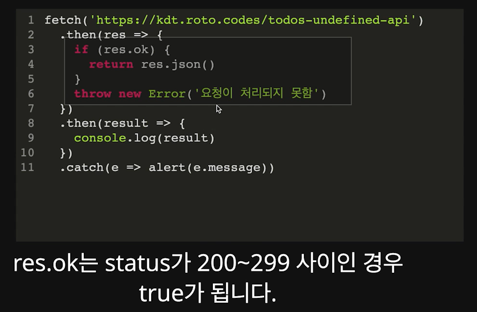 response의 status code나 ok를 체크해주는 것이 좋다.