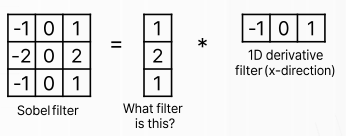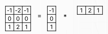 1 2 1 로 이루어진 필터는 blurring의 역할을 담당하고, -1 0 1로 이루어진 필터는 이미지에서의 선 검출에 쓰인다.